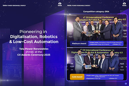 Tata Power Renewables triumphed at the 9th CII National Competition on Digitalization, Robotics & Automation (DRA) – Industry 4.0, securing Gold and Silver awards for its innovative technological advancements. The Gold award-winning project, “Online Site Survey & 3D Design Tool for Rooftop Solar Project,” aims to streamline the creation of solar project designs, ensure Bill of Materials accuracy, and enhance customer satisfaction through an optimized assessment process and immersive 3D visualization tools. The Silver award recognized the “Technological Leap into Smart Procurement with the Procurement Decision Tool,” which aids in managing wafer, cell, and module acquisitions by analyzing vendor details, market trends, and price forecasts, thereby enhancing procurement efficiency and decision-making in a volatile market.
